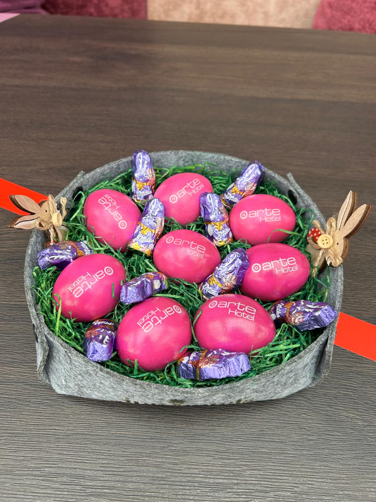 Egal ob Speck, Brot, Osterpinze, Schokolade oder bunte Eier – jedes Osternest bot zahlreiche Leckereien, die sowohl den Geschäftspartnern als auch den Gästen ein großes Lächeln ins Gesicht zauberte.